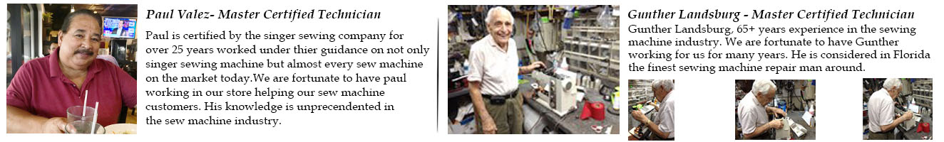 Gator Vacuum & Sewing Co. has been servicing and offering Sewing Machine Repair for over 24 years. We are located in Coral Springs, Florida just east of the Sawgrass Expressway on Sample Road. We are 5 to 20 minutes from Boca Raton, Coconut Creek, Deerfield Beach, Margate, Tamarac, Parkland and Pompano Beach. Our Technicians are well experienced and certified to repair sewing machines, both new and old.